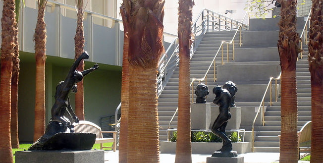 The north-south axis terminates with a grid of date palms serving as a counterpoint to artist Chris Burden’s Urban Light installation.